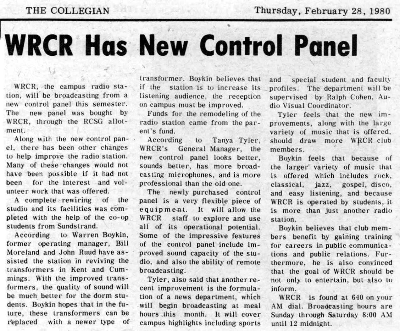 September 25, 1968 - A Step Forward for WRCR (Editorial)