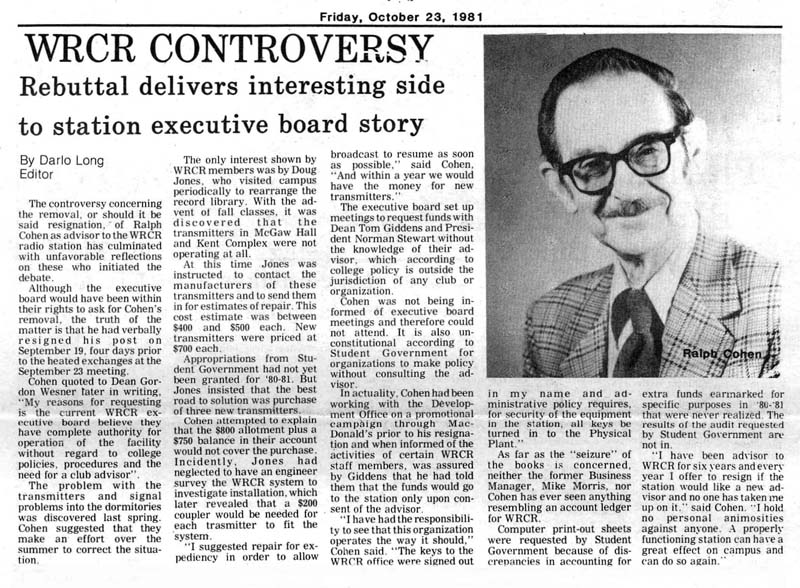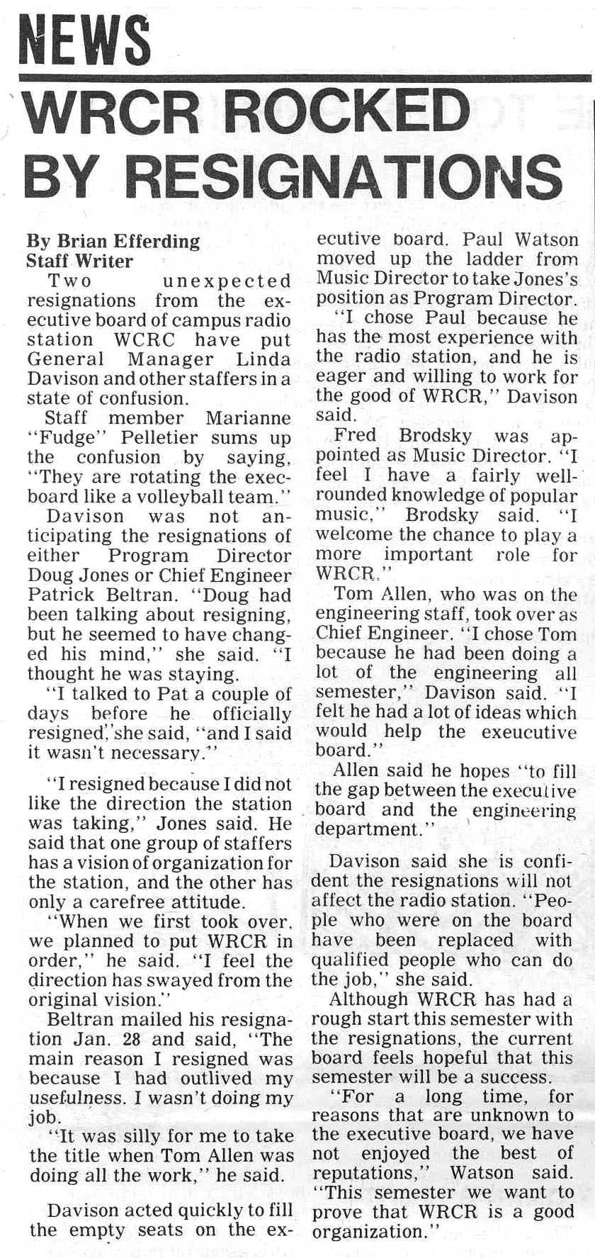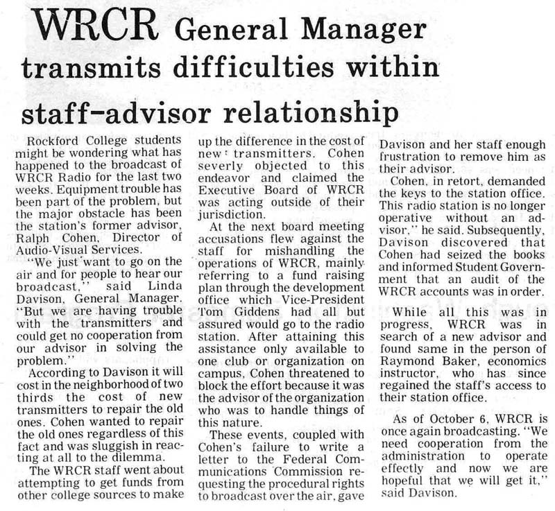 November 8, 1983 - WRCR's future uncertain but they're still on the air (picture)