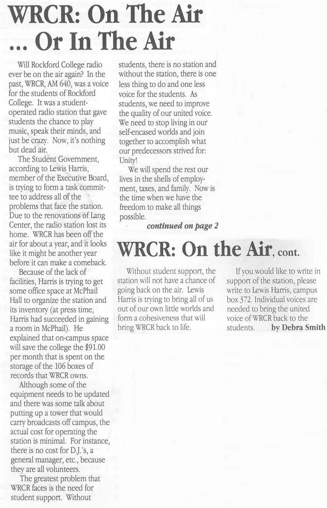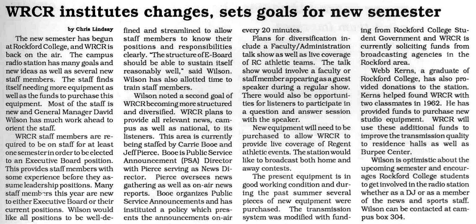 October 4, 1990 - WRCR institutes changes, sets goals for new semester