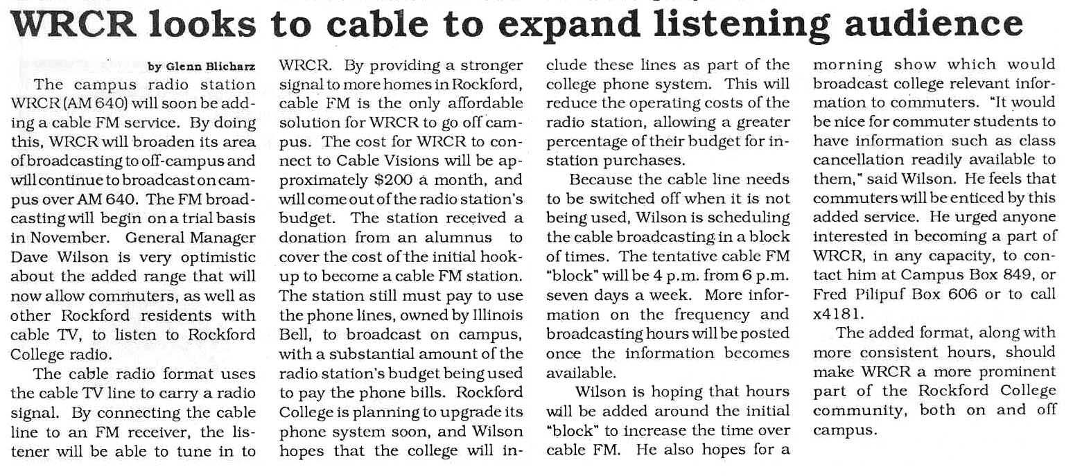 October 24, 1991 - WRCR looks to cable to expand listening audience