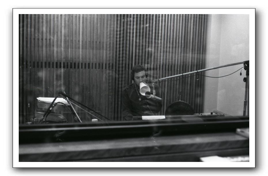 As part of the 1968 IBS convention held in Chicago, WCFL invited college broadcasters to visit their studios. This picture shows Ron Brittian on the air.