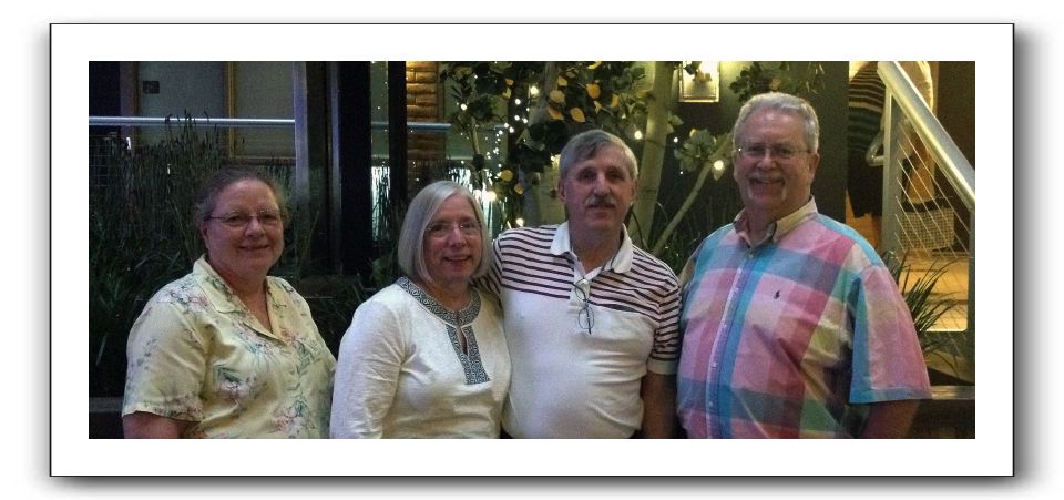 (l-r) Kathy Groth, Carol Hunter, Ross Hunter, and Mark Groth have a mini WRCR reunion in Denver in late June.Katharine Hunter photo