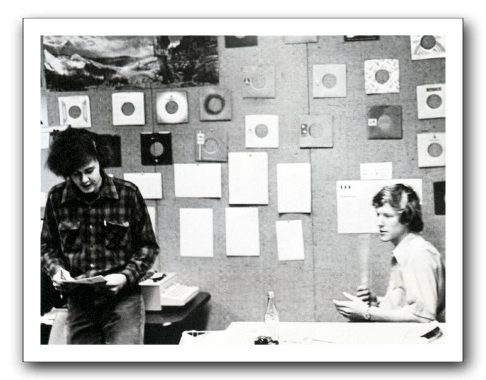 Jerry Mayer (left) and Scott Monahan (right) in studio A of the WRCR lower Burpee studios. 1973 yearbook photo scan by Stina Tanaglia